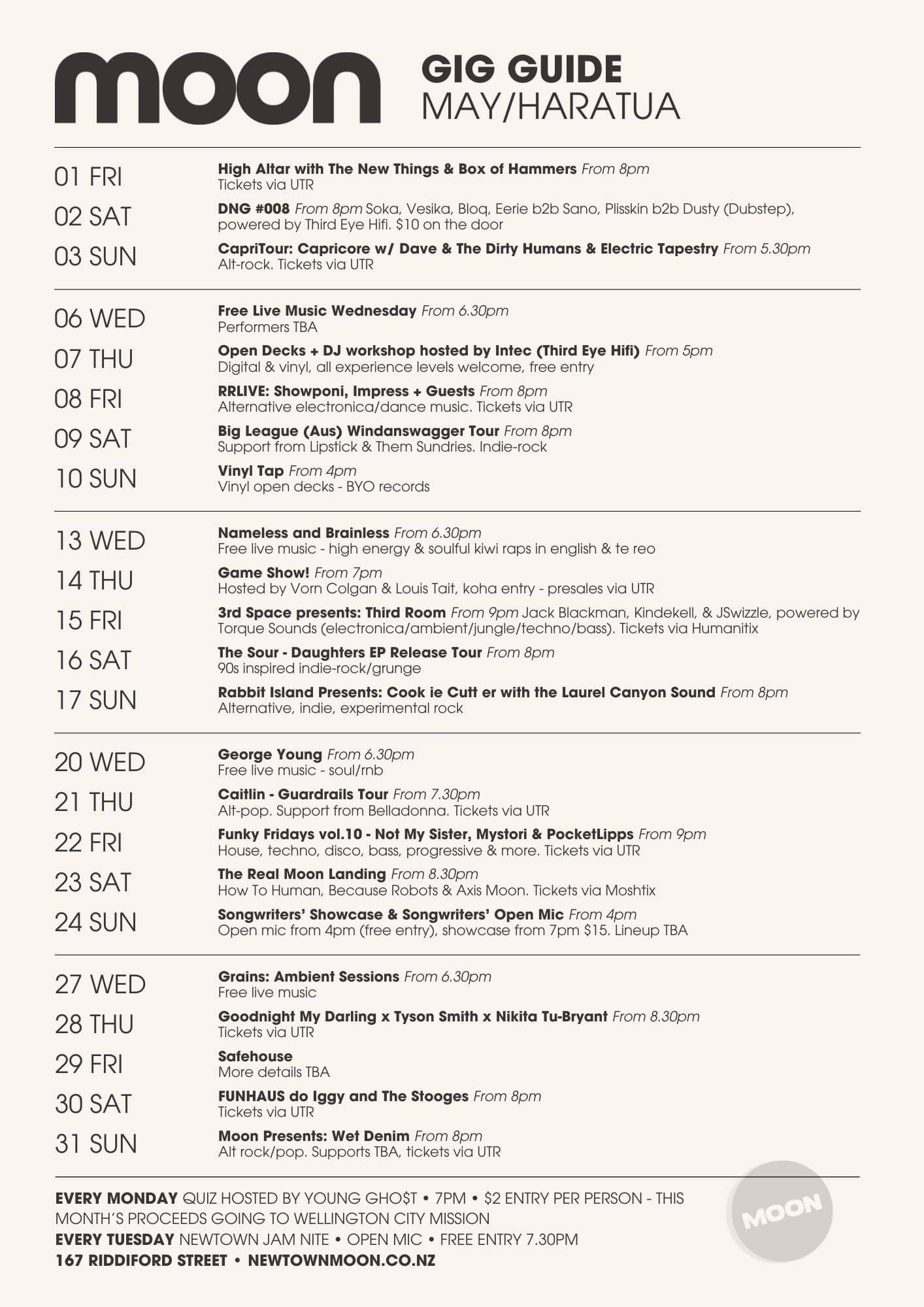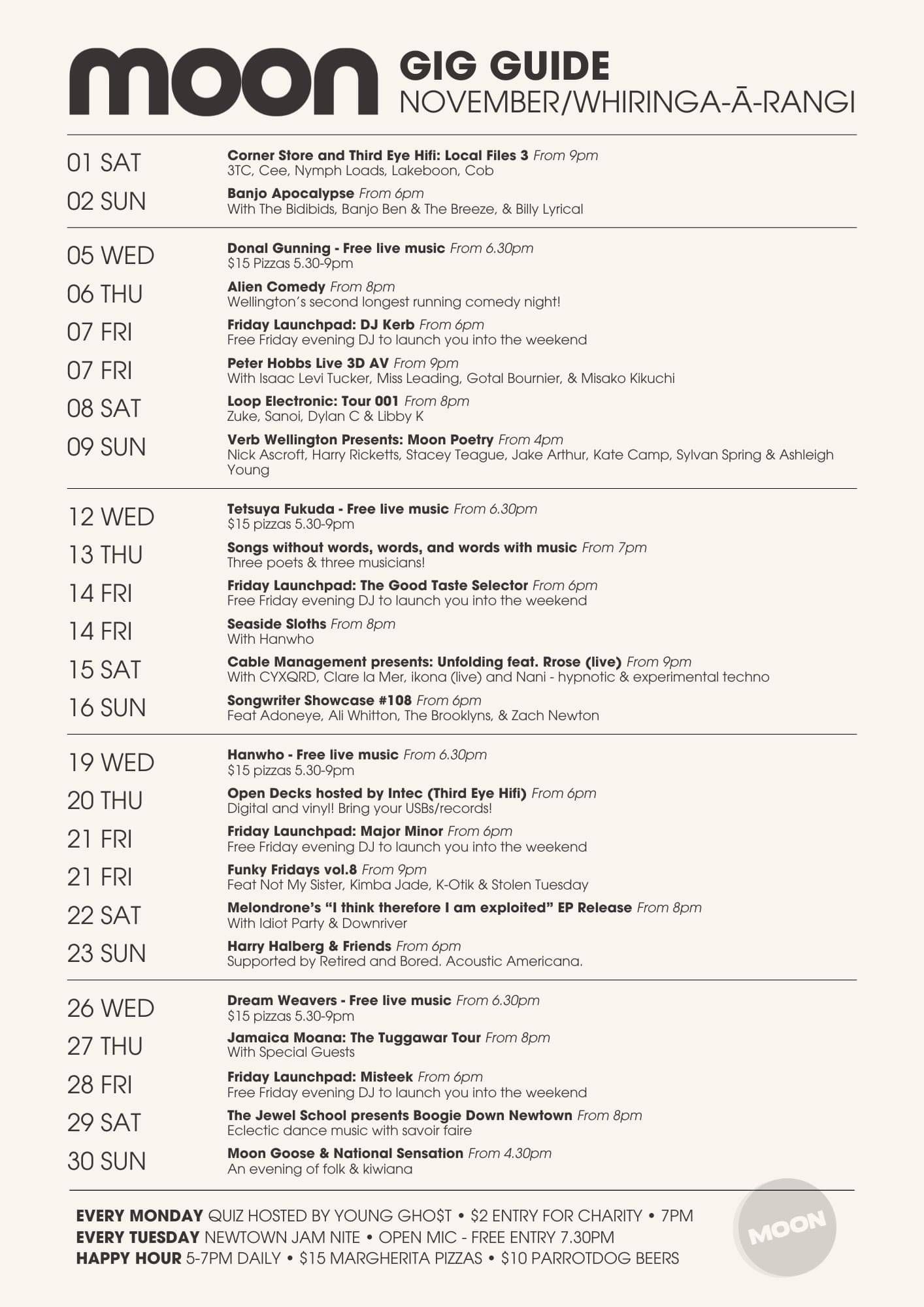 Moon has been rocking some of the best live music in Wellington since 2014. It is our mission to create a safe and fun place for everyone to enjoy.